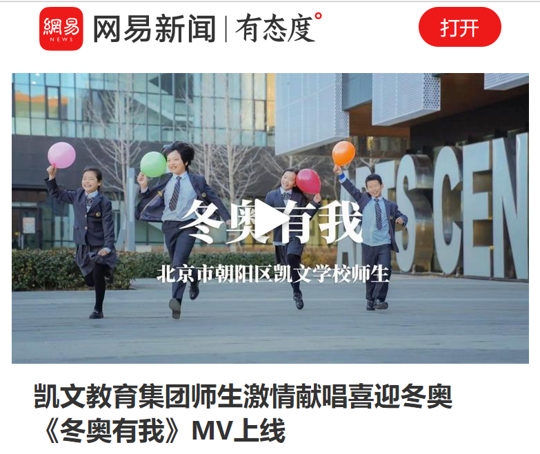 1月25日,由凱文教育集團(tuán)師生演唱的北京冬奧會(huì)主題MV《冬奧有我》,被微博@北京2022冬奧會(huì)發(fā)布,很快就達(dá)到了2萬(wàn)次的觀看。