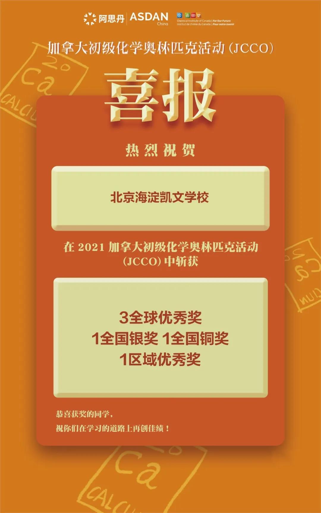 近期,加拿大初級(jí)化學(xué)奧林匹克活動(dòng)(JCCO)落下帷幕,中國(guó)區(qū)超過(guò)310所國(guó)際學(xué)校和公立學(xué)校的近2600名初高中學(xué)生參加了此次活動(dòng)。海淀凱文學(xué)子展現(xiàn)了過(guò)人的理科素養(yǎng)和扎實(shí)的學(xué)術(shù)功底并取得了優(yōu)異成績(jī),收獲頗豐。