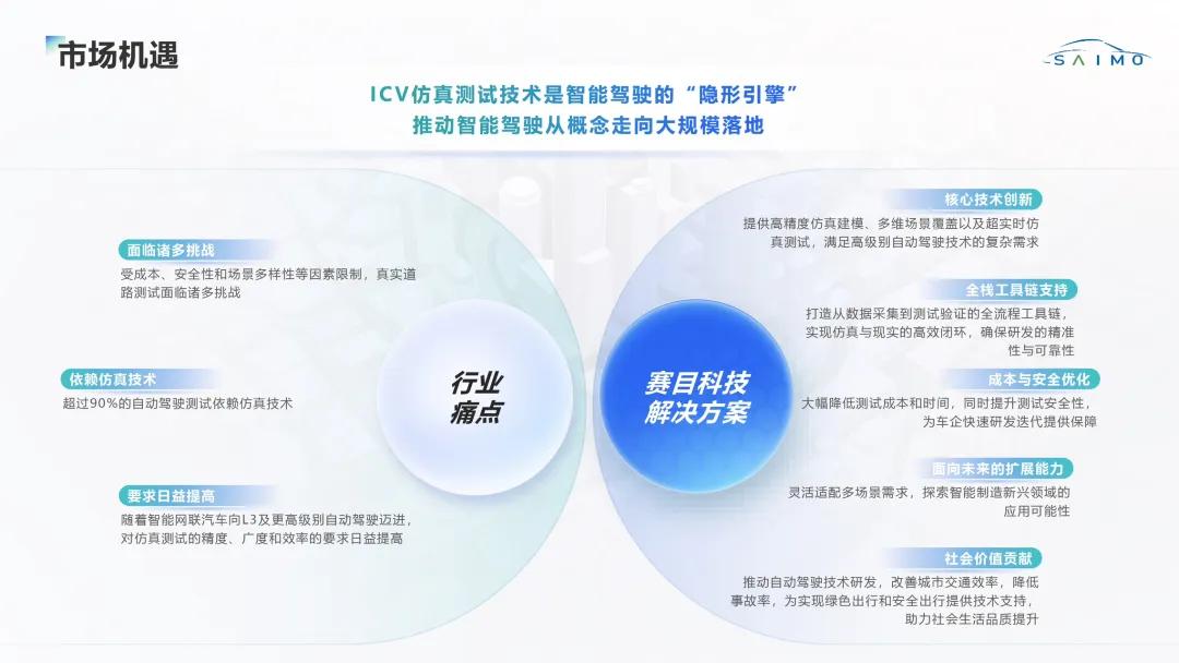 據(jù)介紹,智能網(wǎng)聯(lián)汽車(ICV)仿真測試領域具有廣闊的市場前景。根據(jù)弗若斯特沙利文數(shù)據(jù),中國ICV行業(yè)市場規(guī)模預計從2023年的1653億元增長至2030年的6596 億元,年均復合增長率約20.1%;其中ICV 測試、驗證和評價解決方案行業(yè)市場規(guī)模將以 33.6%的年均復合增長率增長至279億元。賽目科技致力于解決行業(yè)關鍵痛點,并持續(xù)創(chuàng)新,為行業(yè)提供全面的工具鏈解決方案。工具鏈以Sim Pro(仿真平臺)和Safety Pro(綜合安全分析工具)為核心,兩款產(chǎn)品已通過ISO 26262標準的功能安全認證,成為賽目科技技術壁壘和利潤增長點的重要組成部分。憑借技術優(yōu)勢和市場前瞻性,賽目科技正成為智能駕駛從概念邁向規(guī)模化落地的“隱形引擎”,也是這一高速增長中的最大受益者。
